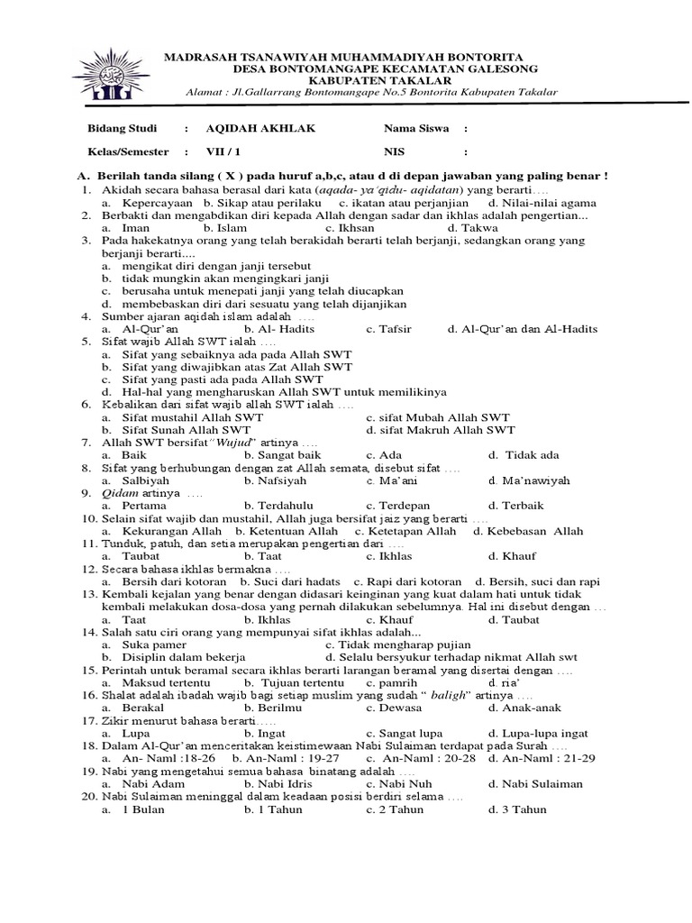 Contoh Soal Akidah